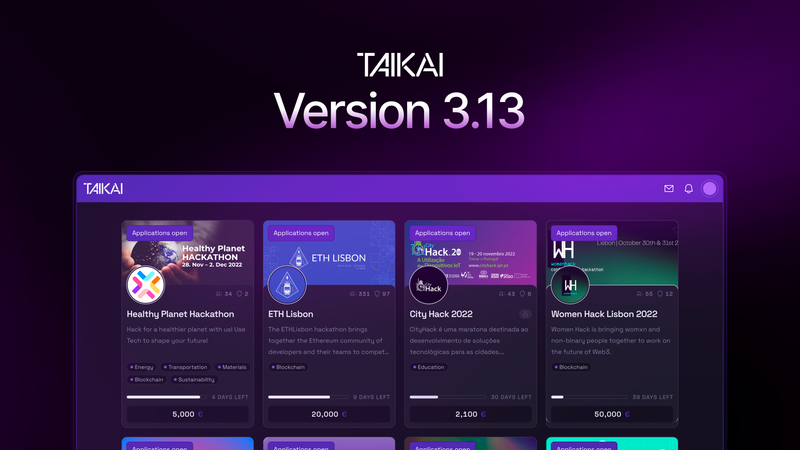 Version 3.13 also brought a section dedicated to our newly released Consultancy service. On this new landing page, web3 projects and organizations can learn more about the consultancy package provided by TAIKAI to help companies streamline the organization process of hackathons.