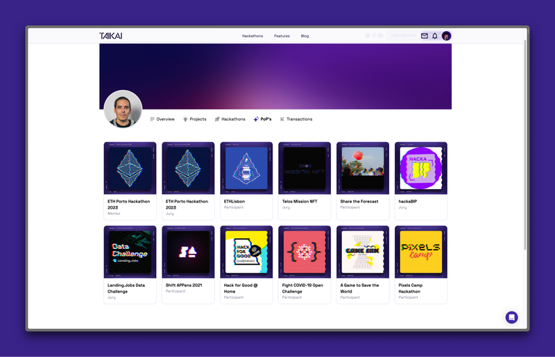 The idea for PoP originated in the first hackathon at TAIKAI in March 2019. Initially, we called them "badges" and intended to use them to promote gamification within the community. However, other features took priority over this idea and remained dormant. But if you want to know more about PoP, you can always read our blog post “Proof of Participation (PoP): Explained”.