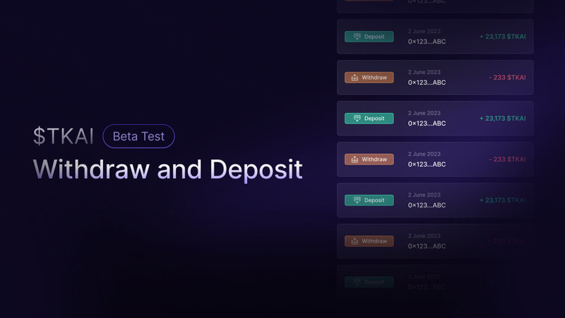 The Withdraw and Deposit $TKAI Feature Beta Version has been developed and is now accessible to a select group of users. This highly anticipated feature allows users to withdraw tokens from their wallets or deposit tokens from their wallets to the platform for internal use. Currently, the feature is in a BETA testing phase, where a limited set of users can test its functionality and provide feedback. Soon, we will advance with stage 2 of the BETA testing phase, and open it to more people in order to further collect feedback and identify exploits.